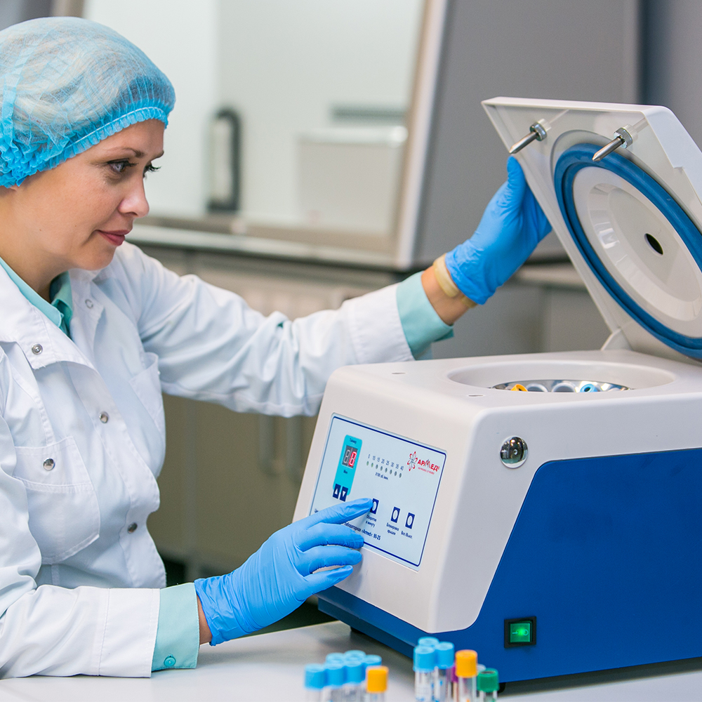 Элементы привода и барабана центрифуги выполнены из металла, корпус из АВС пластика, что обеспечивает надежную изоляцию. Ножки центрифуги снабжены резиновыми противоскользящими наконечниками, для устойчивости при работе. Центрифуга оснащена таймером. Возможность изменения скорости вращения с помощью, предусмотренных на лицевой панели кнопок. Наличие блокировки крышки.