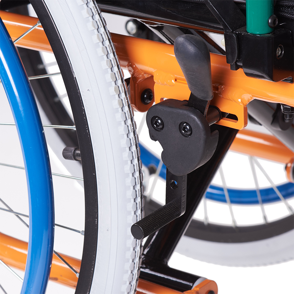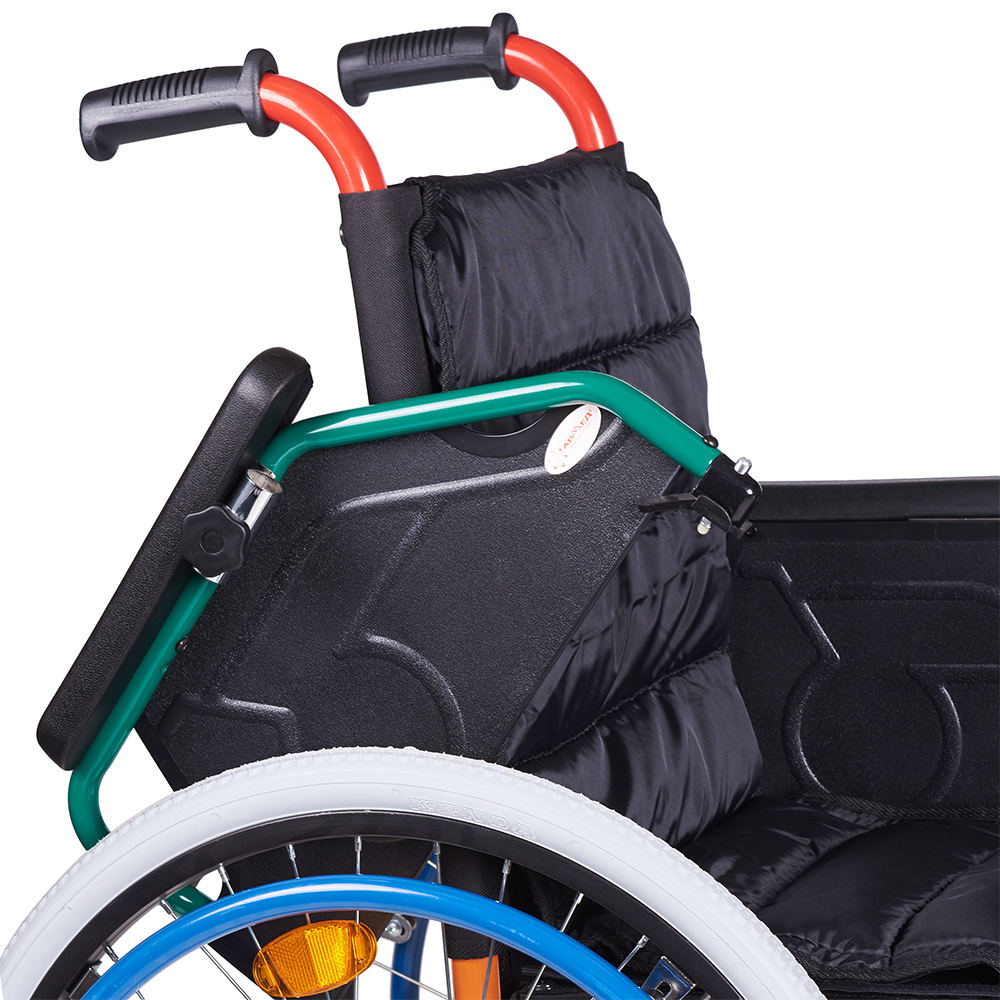 Яркая и стильная детская модель инвалидного кресла-коляски активного типа позволяет производить прогулки даже без сопровождающего лица. Оснащена передними цельнолитыми и задними пневматическими колесами. Наличие откидных подлокотников позволяет производить посадку пациента как спереди, так и сбоку.
