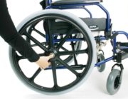 Инвалидное кресло подходит для людей различной комплекции (грузоподъемность до 115 кг). Пневматические колеса имеют хорошую амортизацию и придают дополнительную устойчивость во время движения.