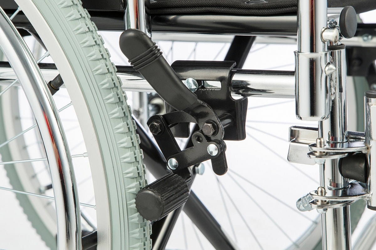 Подножки снабжены откидными упорами для икр, регулируемыми по углу наклона