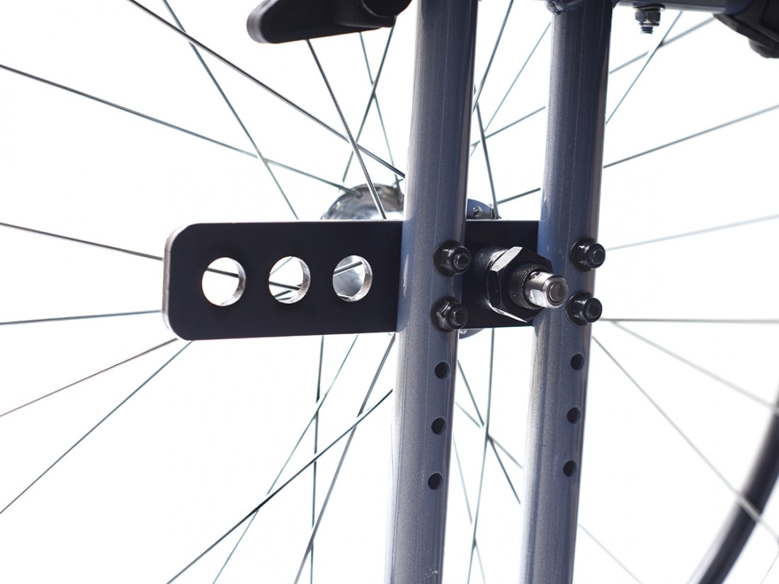 Высота сиденья регулируется спереди и сзади за счет изменения положения колес