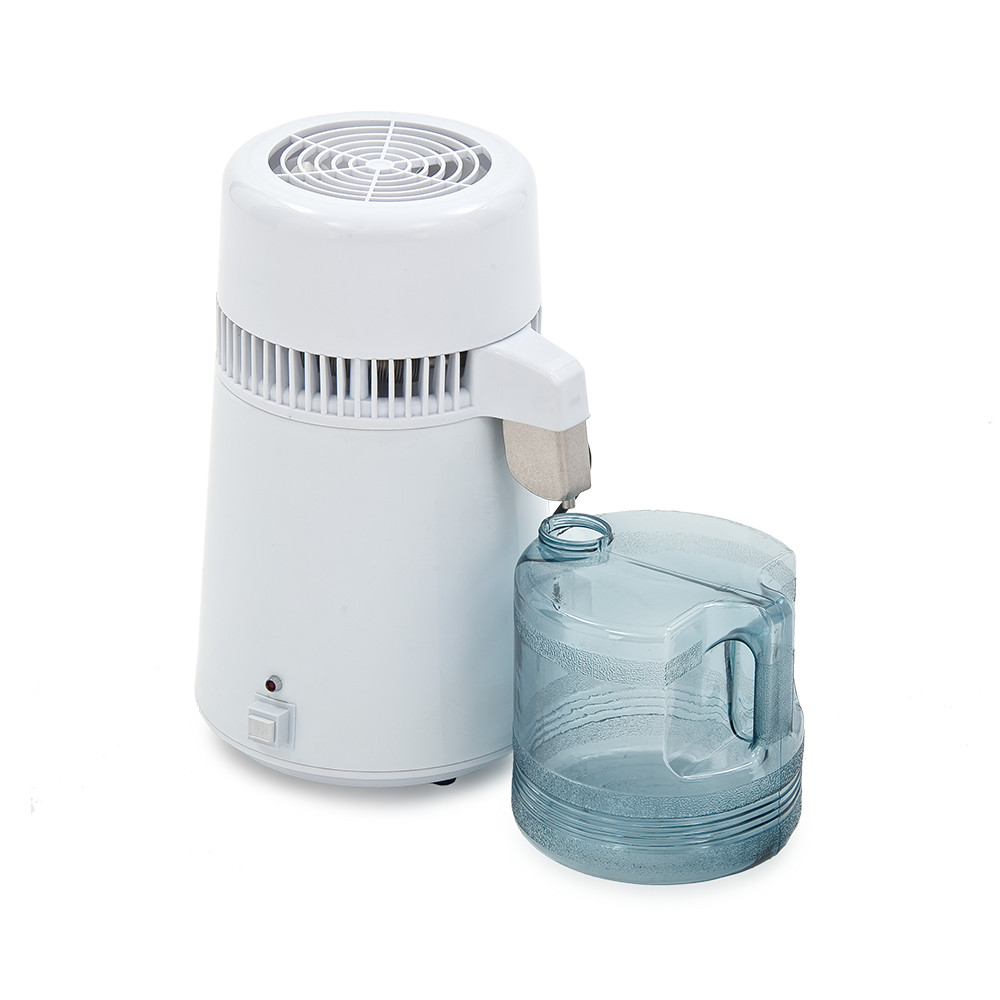 Корпус и крышка выполнены из прочных, долговечных материалов. В корпусе размещена камера кипения. Кувшин соединен с корпусом при помощи удобного картридж-носика. Всего одна кнопка для управления дистиллятором. Автоматическое выключение питания по окончанию рабочего процесса.