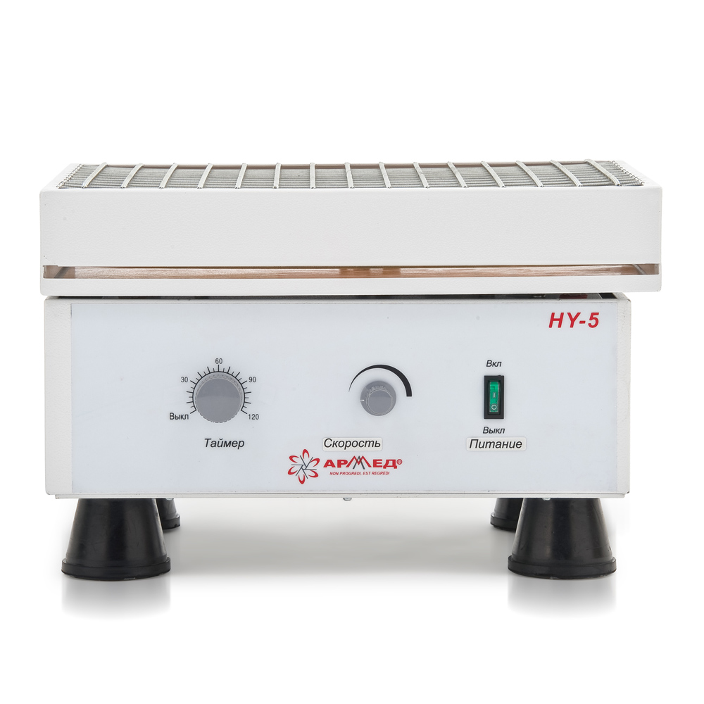 Перемешивание растворов осуществляется за счет эллиптического (орбитального) вращения колб или бутылей, установленных в ячейках рабочего стола шейкера. Для дополнительной устойчивости усиленное днище оснащено дополнительными грузами, а также резиновыми противоскользящими опорами-амортизаторами. Шейкер оснащен платформой с зажимами и может быть использован для треугольных бутылок, пробирок для исследований, колб, химических стаканов и другой посуды. На лицевую панель вынесены основные элементы управления. Регулятор скорости вращения обеспечивает плавную регулировку скорости перемешивания. Ручка регулировки таймера позволяет установить необходимое время работы шейкера.