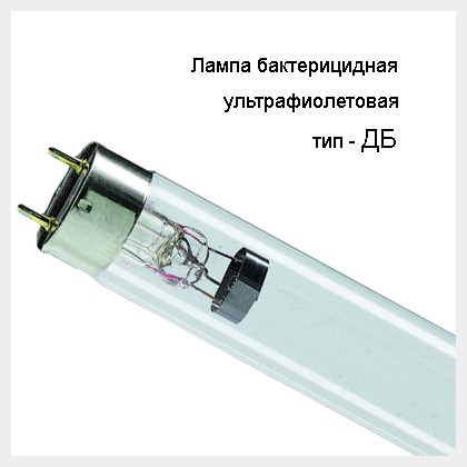 Бактерицидная безозоновая лампа ДБ 15 длина — 450 мм; бактерицидный поток — 11,2 Вт; мощность — 15 Вт; ток лампы — 0,37, А; напряжение на лампе — 102 В; спад бактерицидного потока после 5000 час — 12%; срок службы — 9000 ч; количество в упаковке — 25 шт; масса (лампы) - 0,135 кг; габаритные размеры упаковки - 460*150*150 мм; масса (брутто) - 1,9 кг. Обеззараживание помещения происходит за счет прямого облучения поверхности и конвекции слоев воздуха. Для облучателей бактерицидных ОБН-15, ОБУ-150 и др.