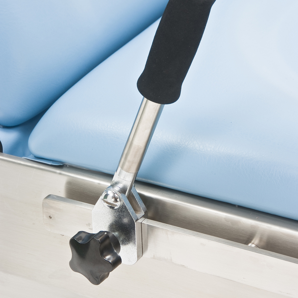Тазобедренная секция кресла-кровати снабжена двумя регулируемыми держателями для рук и двумя упорами для ног.