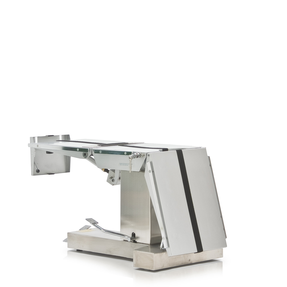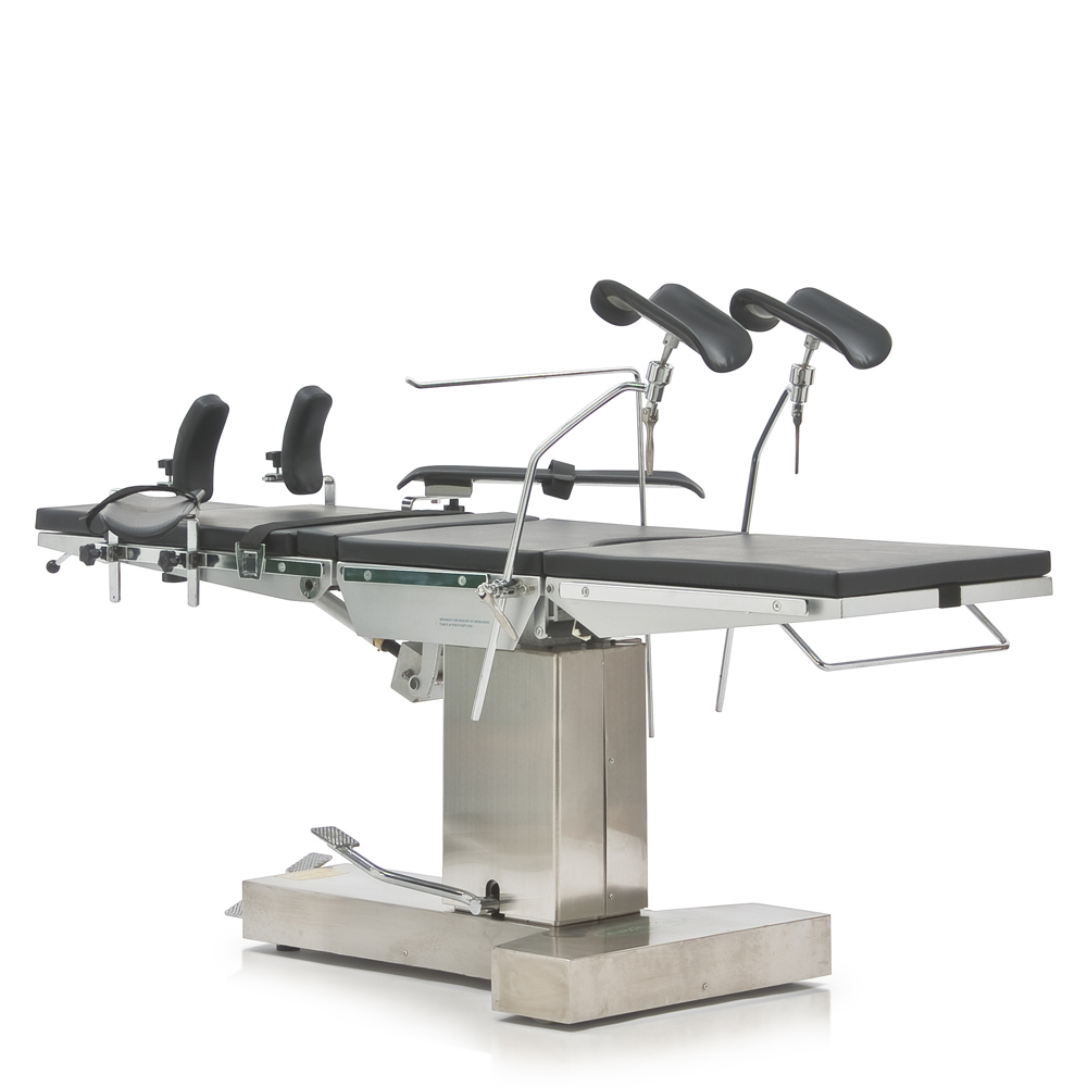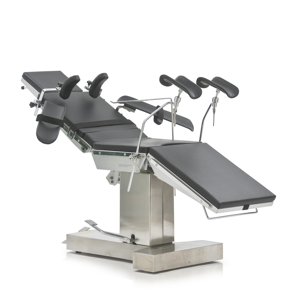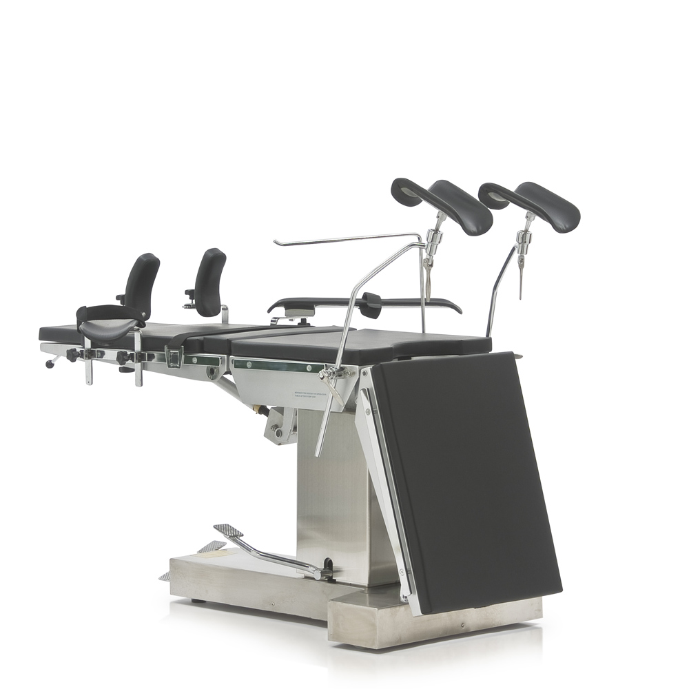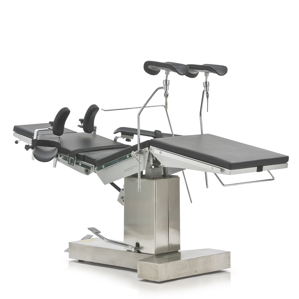 Основание операционного стола, основные элементы конструкции, а также металлические части аксессуаров выполнены из нержавеющей стали..