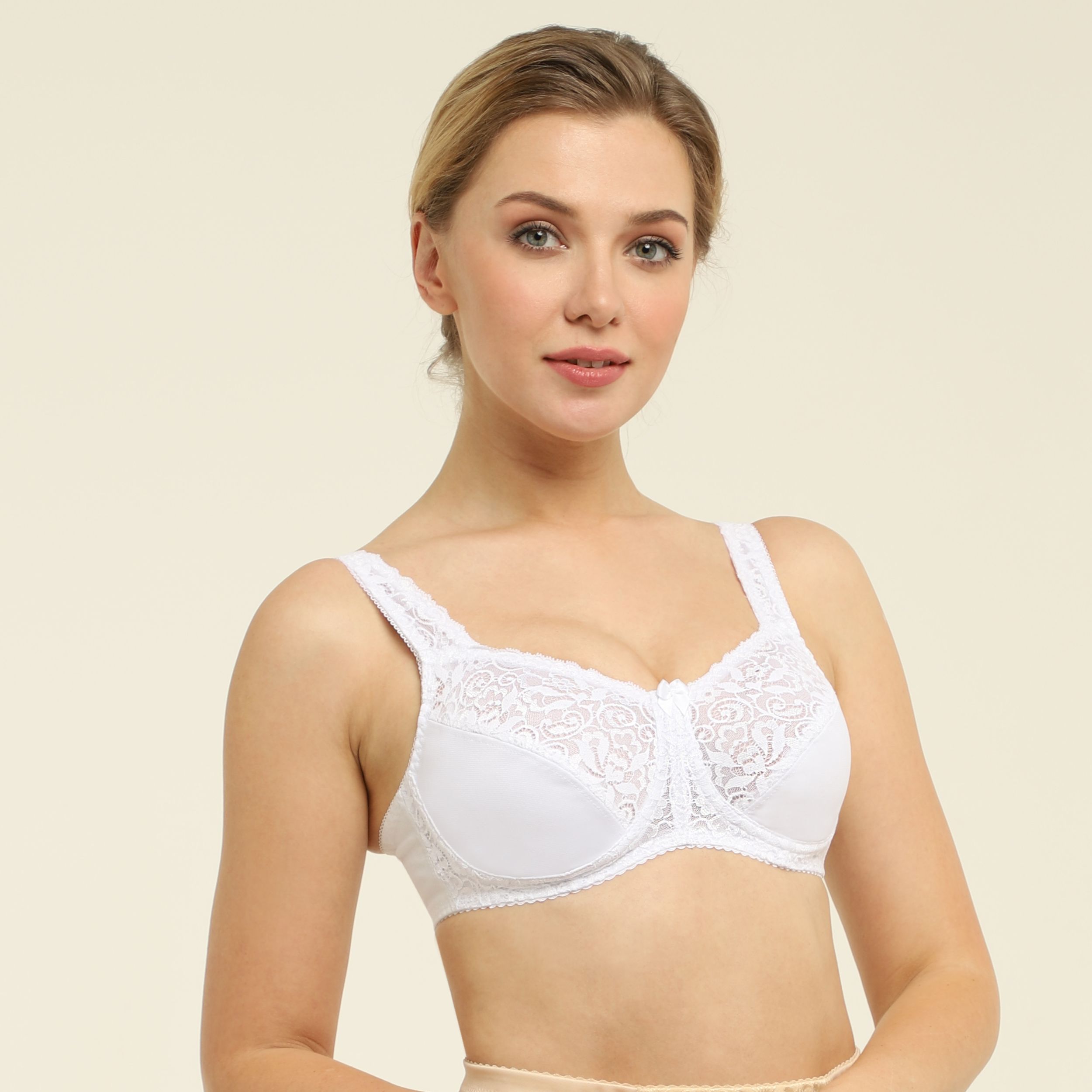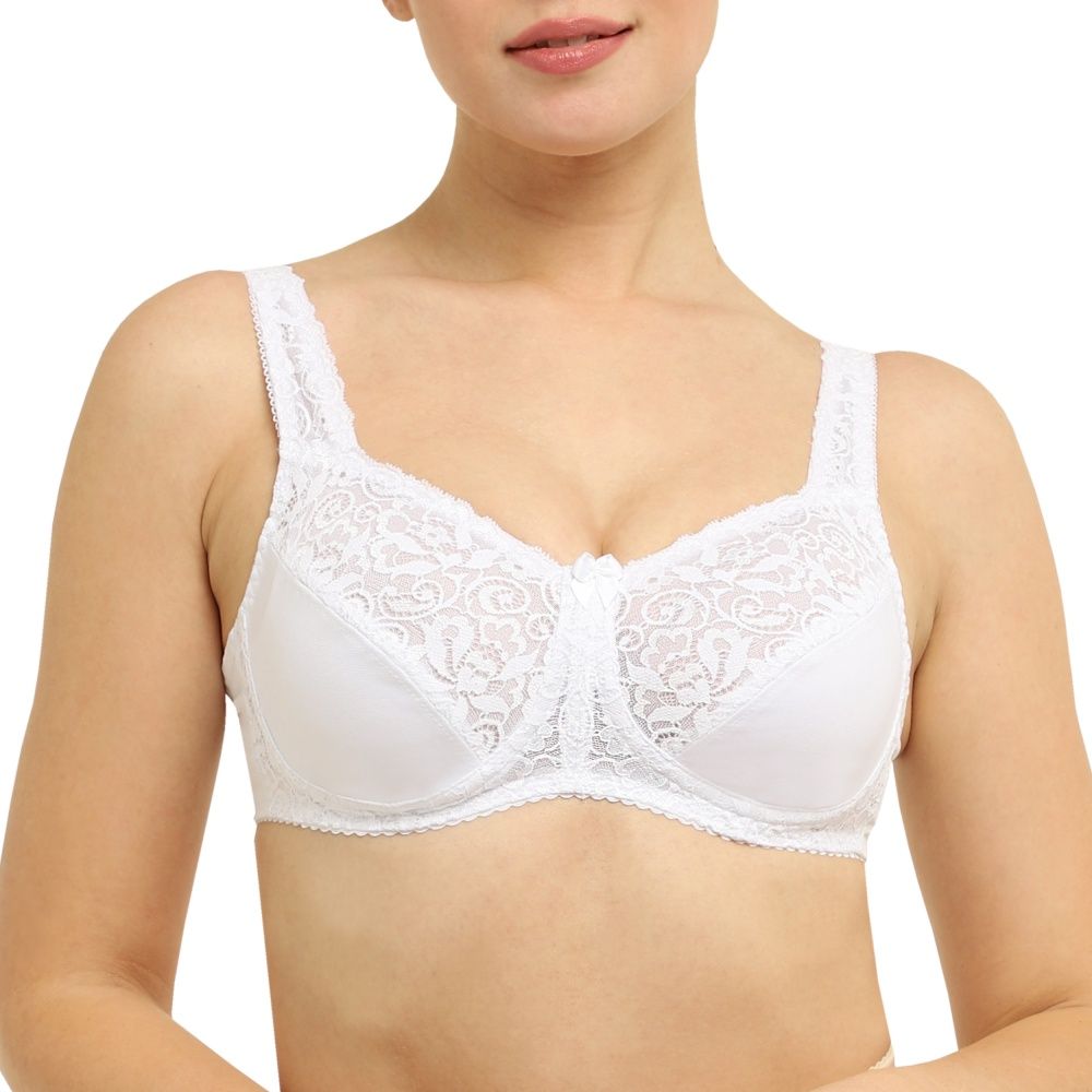 - Элегантный кружевной бюстгальтер с мягкими чашками и двумя втачными карманами для протезов из хлопчатобумажного материала