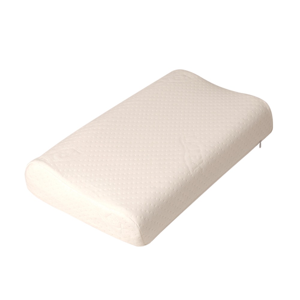 Наполнитель подушки – натуральный латекс, гипоаллергенный материал с антимикробными свойствами. Мелкая перфорация способствует оптимальному воздухообмену. Два валика с различной высотой. Предусмотрен несъемный чехол и наволочка из хлопка на молнии.