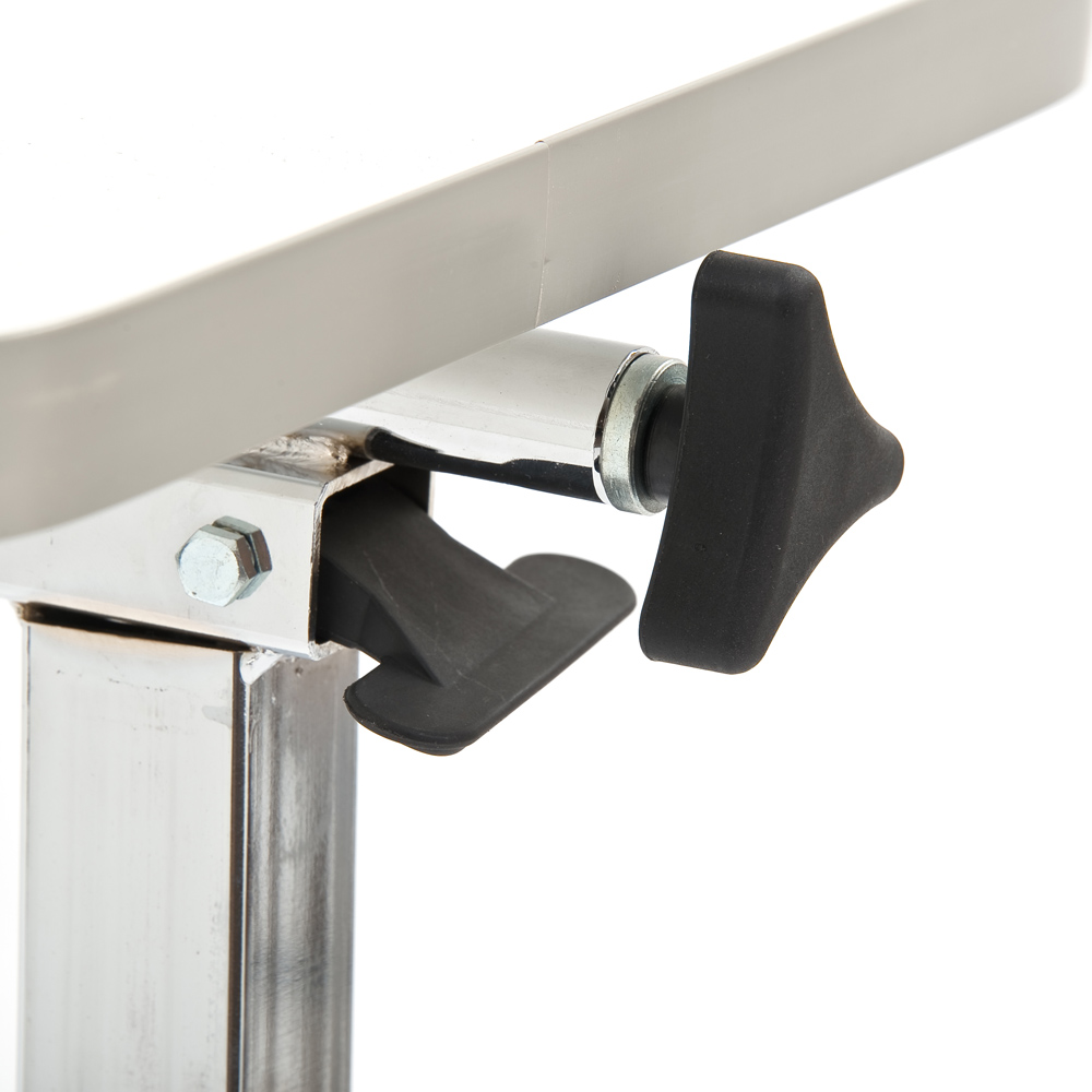 В основании столика предусмотрены колеса, обеспечивающие простоту его передвижения.