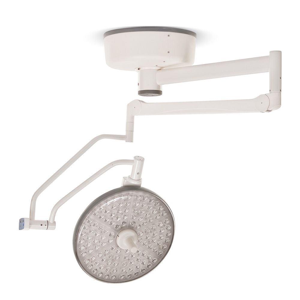 Однокупольный бестеневой светодиодный светильник направленного холодного белого света.
