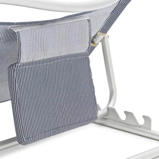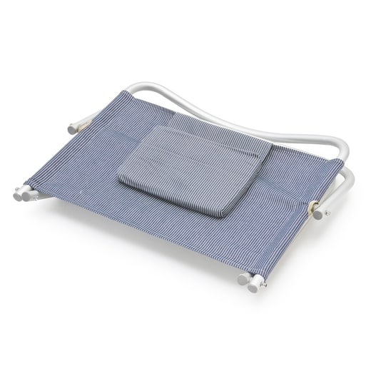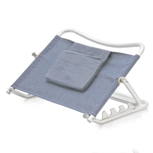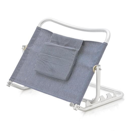 Подголовник оснащен мягкой, съемной подушкой, которая крепится к раме с помощью удобной застежки-велькро. Рама изготовлена из металла с эмалевым покрытием.Высота и угол наклона регулируются с помощью удобных фиксирующих опор, расположенных на раме.