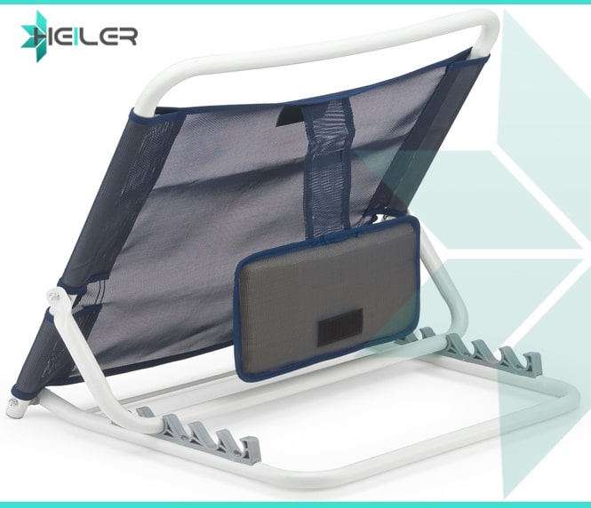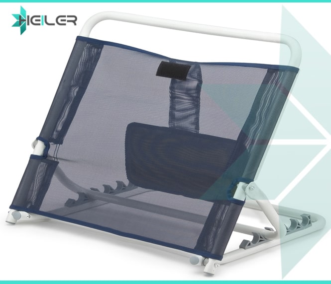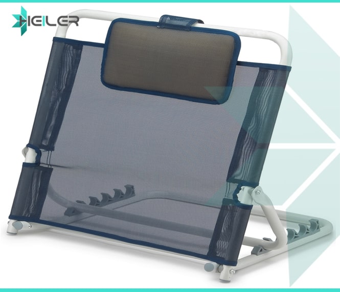 Подголовник Heiler ВЕ426 предназначен для обеспечения дополнительных удобств при еде, чтении, письме, для людей с длительным постельным режимом, лиц пожилого возраста, ослабленных пользователей. Он позволяет принимать положение полусидя без напряжения в спине. На раму подголовника натянут прочный текстильный материал. Мягкая подушка крепится на него с помощью липучки, при необходимости ее можно откинуть назад. Регулировка высоты и угла наклона подставки обеспечивает максимальное удобство пользователю. Натянутая на раму прочная сетка из водостойкой ткани позволяет использовать подголовник в ванной комнате.
