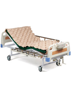 Матрас представляет собой противопролежневую систему, состоящую из матраса и компрессора. Матрас изготовлен легкомоющегося гипоаллергенного материала (поливинилхлорида). Воздушные камеры в форме пчелиных сот. Переменное давление создается благодаря насосу, который через трубки подает воздух поочередно, в задаваемом ритме, в различные ячейки матраса. Регулировка давления в зависимости от веса пациента. Эффект непрерывного массажа. Простая и понятная система управления. Компрессор можно разместить на полу или на боковом ограждении кровати.