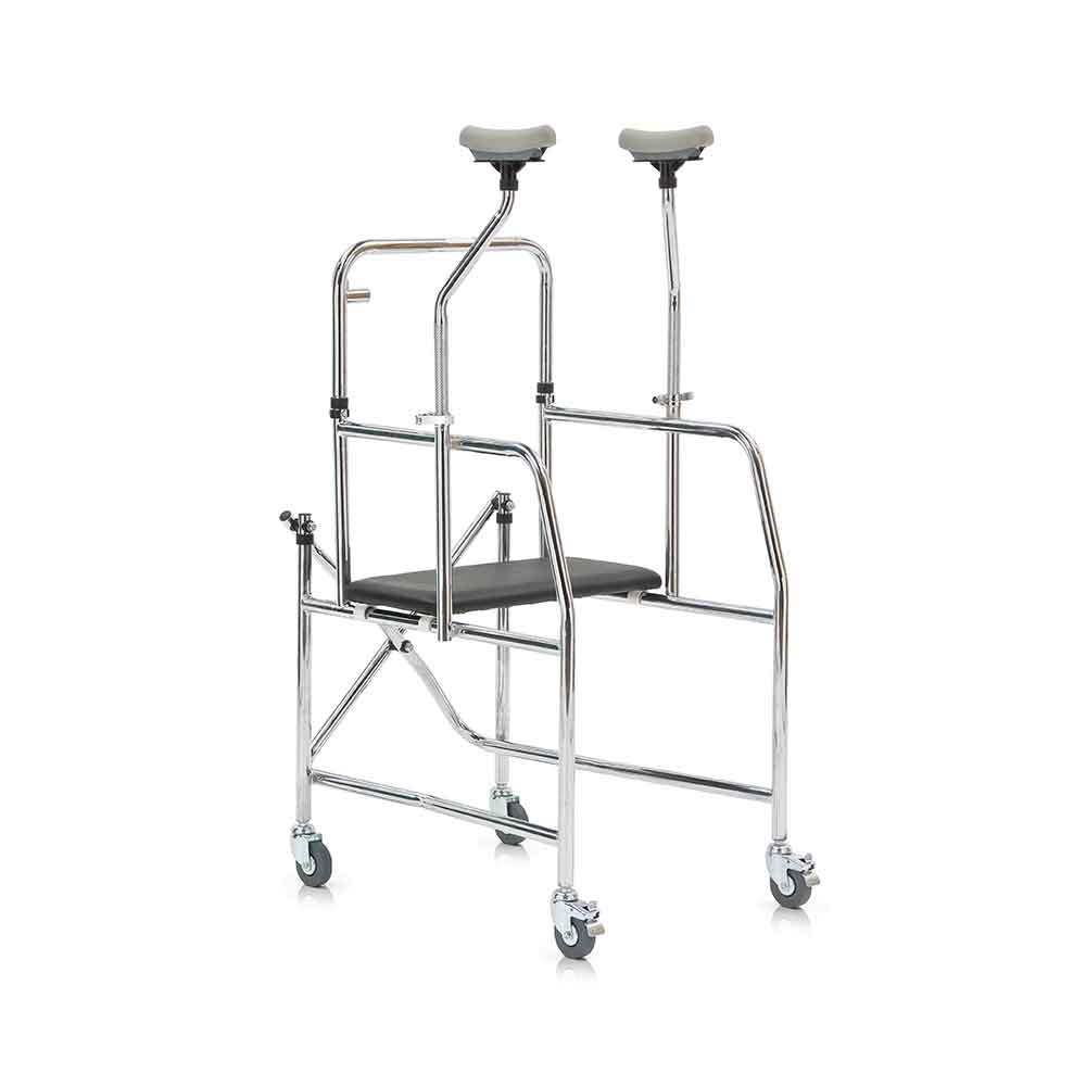 Ходунки оснащены мягким сиденьем из искусственной кожи и упорами под подмышки.