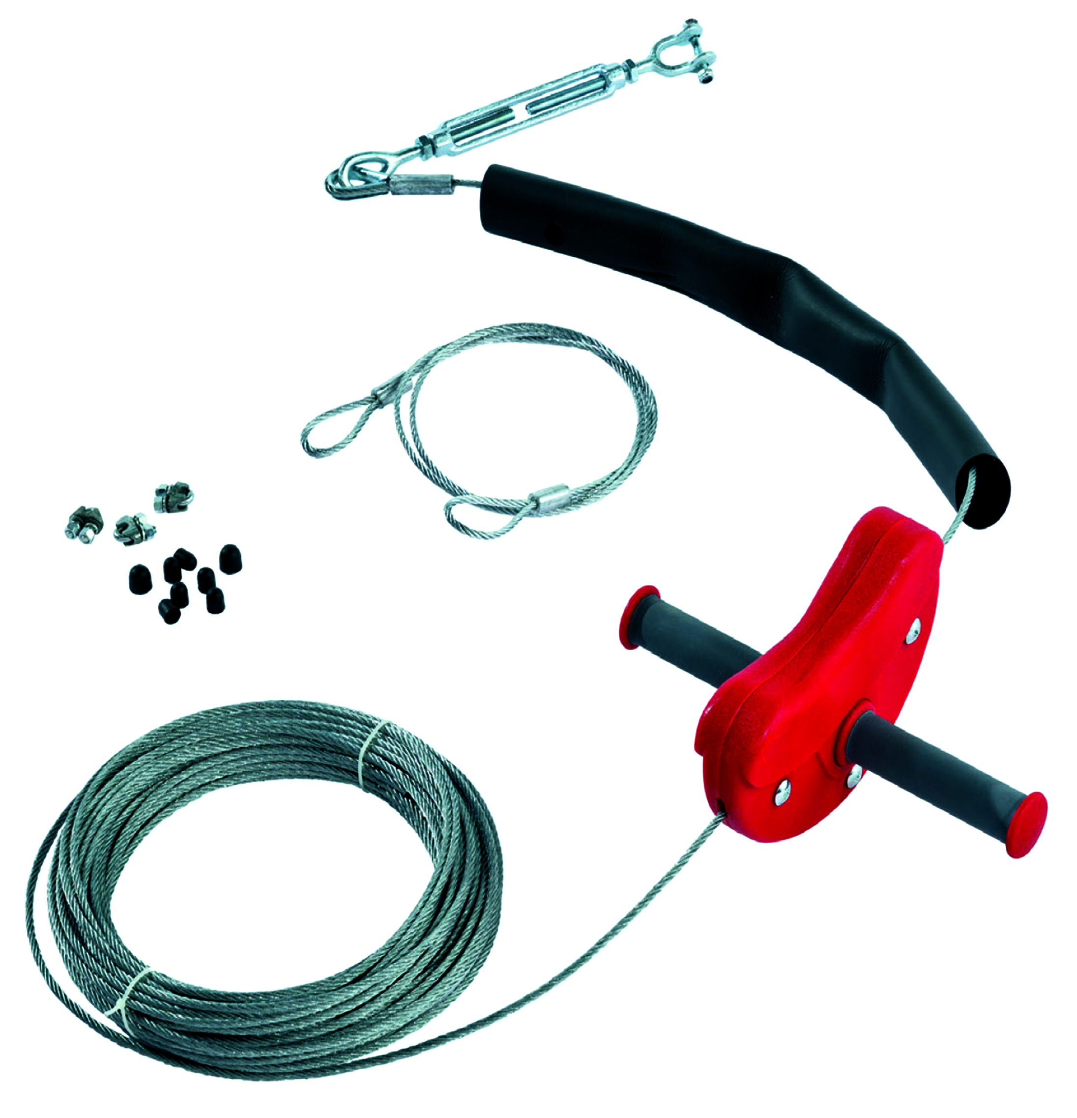 Трос легко монтируется к любому дереву. Внутренняя часть держателя троса сделана целиком из стали, что обеспечивает максимальную надежность. Рукоятки имеют противоскользящее покрытие.