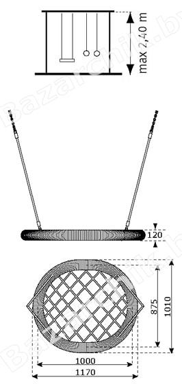 материал подвесной части: цепь из нержавеющей стали (Ø 6 мм)/армированный канат (16 мм)*