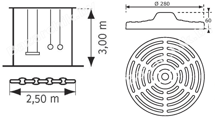 Цепь качелей имеет D-образную скобу у верхнего конца. Крепятся такие цепи на подвес Premium из нержавеющей или оцинкованной стали, который вы также можете приобрести в нашем интернет-магазине.
