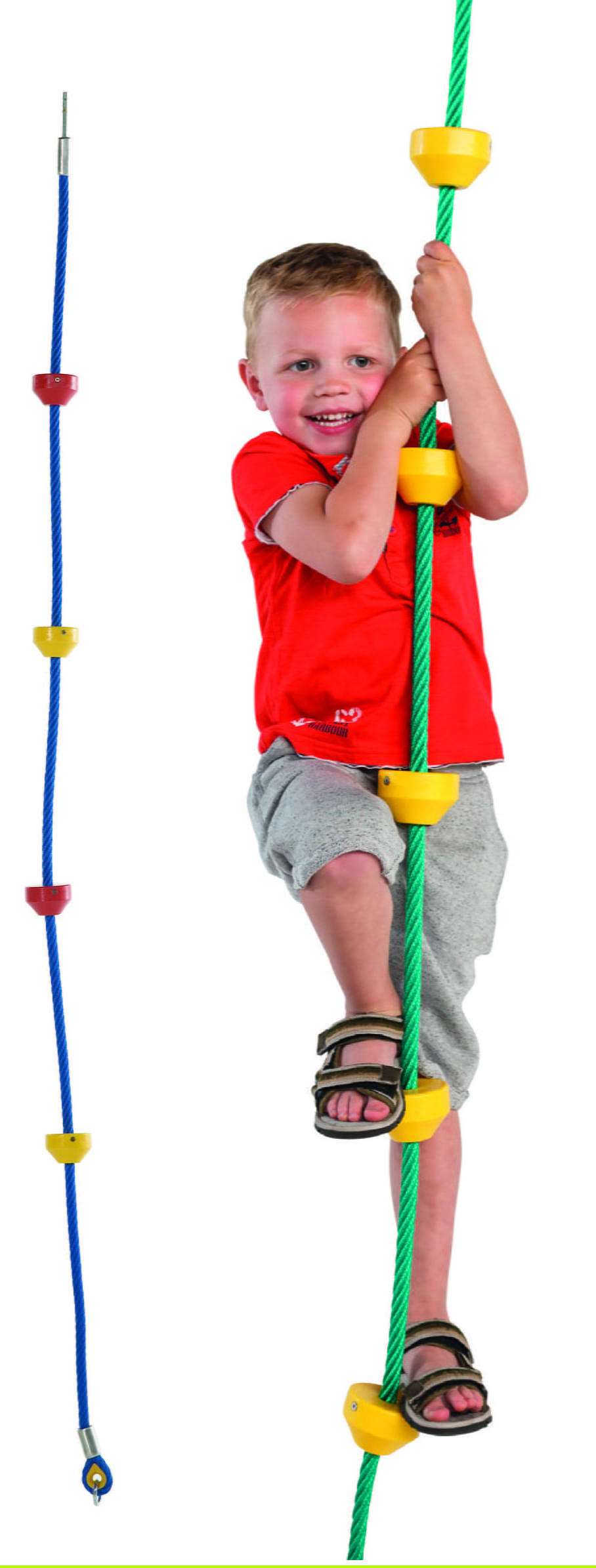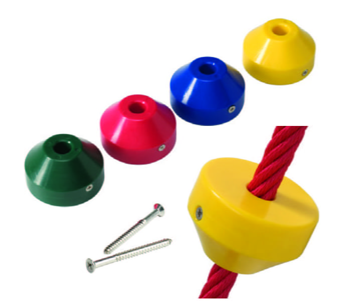Зацепы изготовлены из прочного РР пластика. Используются для самостоятельного изготовления канатов для лазанья. Отверстия подходят под армированный канат КВТ Ø 16 мм. Канат может быть как с узлами одного цвета, так и с разноцветными или с узлами в цвет каната. В комплекте идут два болта для крепления.