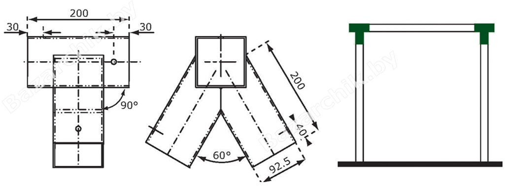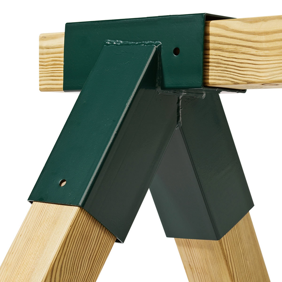 Уголок для балки прямой квадратный производства КВТ предназначен для качельных балок квадратного сечения с правым углом. Изготовлен он из прочного металла и окрашен методом порошкового распыления. Уголок предназначен для перекладин и вертикальных балок сечением 90х90 мм.