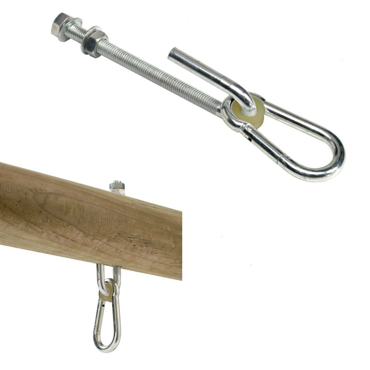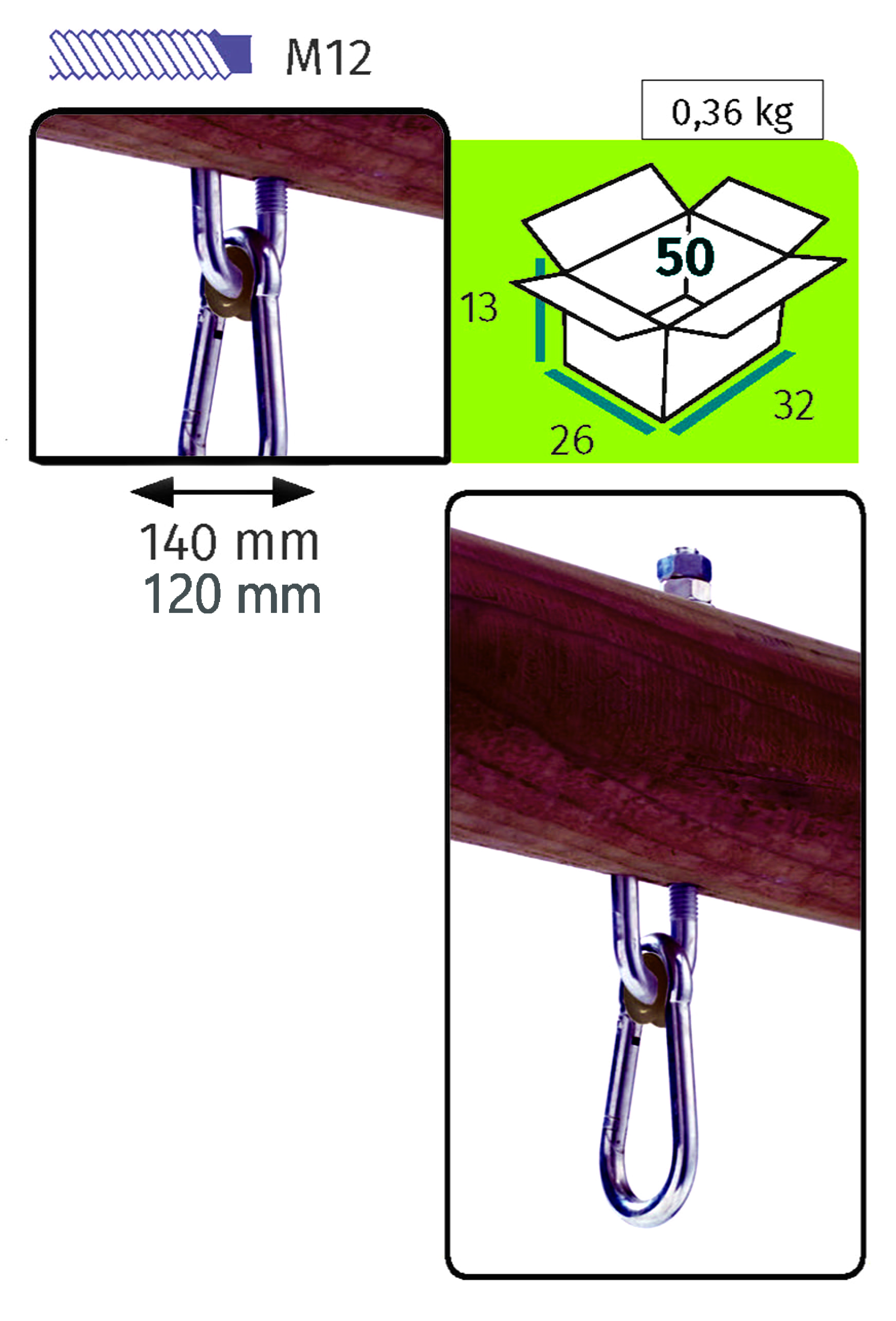 Сквозной подвес для качелей Тип J используется для крепления качелей подвесных. Поставляется с нейлоновым подшипником, обладающим более высокими характеристиками, чем PP втулки. Все подвесы KBT выполнены из очень толстой светлой оцинкованной стали согласно жестким требованиям.