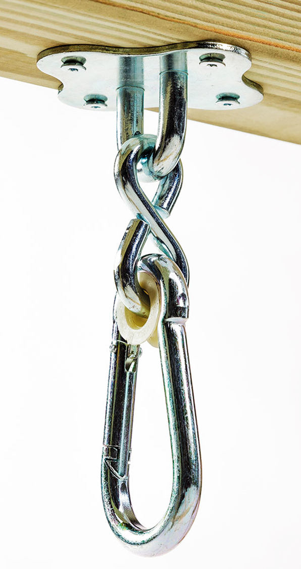 Карабин (подвес) для качелей Indoor разработан специально для установки в помещении или под навесом. Это отличная альтернатива для тех, кто хотел бы установить качели, но не имеет для этого достаточно места на приусадебном участке. Установив крепеж Indoor в помещении, у вас будет возможность качаться на любимых качелях в непогоду или даже зимой. Все подвесы KBT выполнены из очень прочной светлой оцинкованной стали согласно жестким требованиям. Карабин Indoor поставляется с нейлоновым подшипником, обладающим повышенной прочностью по сравнению с подобными полипропиленовыми втулками. Крепеж для монтажа в комплект не входит.