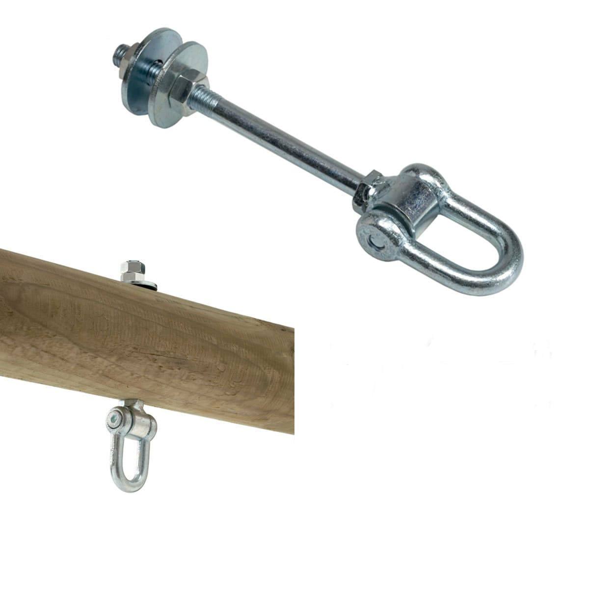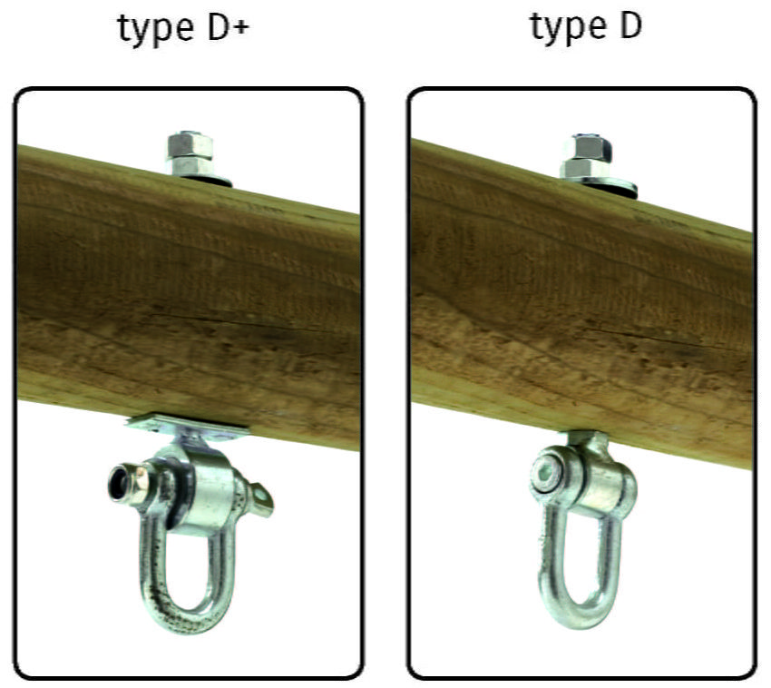 Сквозной карабин для качелей Тип D 140 мм используется для крепления подвесных качелей. Поставляется подвес с нейлоновым подшипником, обладающим повышенной прочностью по сравнению с полипропиленовыми втулками, и применяется для больших нагрузок. Подходит Сквозной карабин как для круглых бревен, так и для квадратных балок. Все подвесы KBT дополнительно защищены более глубоким слоем оцинковки, в соответствии с повышенными требованиями норм к данным элементам.