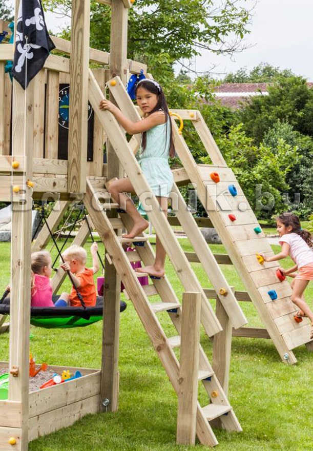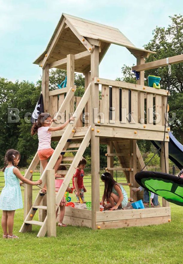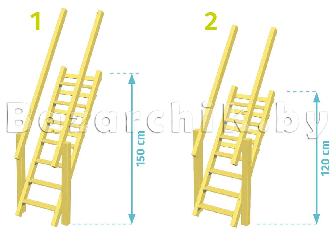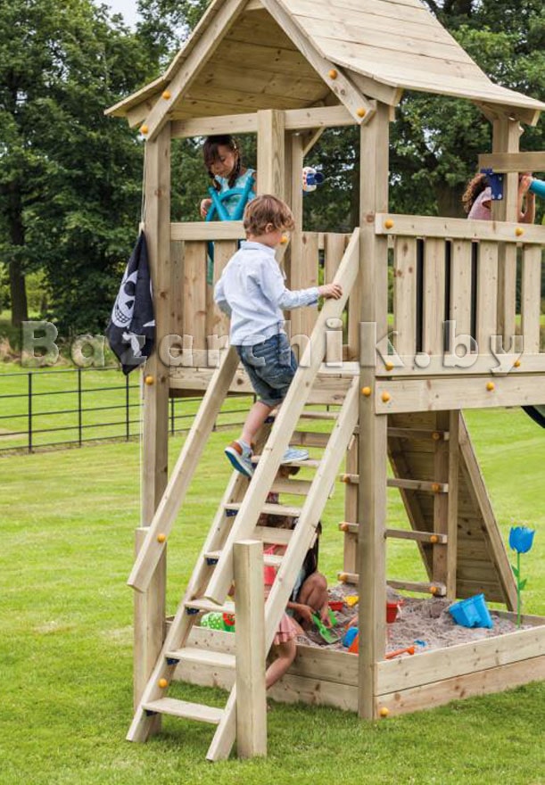 Предлагаем набор-конструктор для установки дополнительного игрового модуля "Лестница" (древесина в комплект не входит). Это очень простой в установке модуль, который подойдет для детских площадок фирмы kbt (Бельгия) Palazzo, Pagoda, Kiosk, Penthouse, Beach Hut и Belvedere. В зависимости от высоты башни можно использовать один из вариантов - с высотой 1,2 или 1,5 м. Лестница имеет широкие ступеньки и удобные поручни, которые позволят ребенку безопасно подняться наверх.