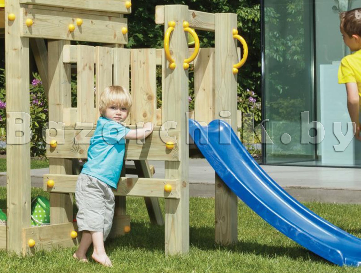 Предлагаем набор-конструктор для установки дополнительного игрового модуля "Платформа" (древесина в комплект не входит). Этот модуль - прекрасный вариант для дополнения любой из площадок фирмы kbt (Бельгия) Pagoda, Cascade, Penthouse, Beach Hut и Kiosk. В зависимости от доступного пространства модуль может быть установлен справа или слева от игровой башни. Платформа высотой всего 60 см прекрасно подойдет для самых маленьких пользователей, которым в силу возраста основная башня будет высокой. На данном модуле можно разместить всевозможные навесные аксессуары (подзорную трубу, колокол, бинокль, штурвал и т.д.), а также дополнить его скатом 1,18 м "Toba".