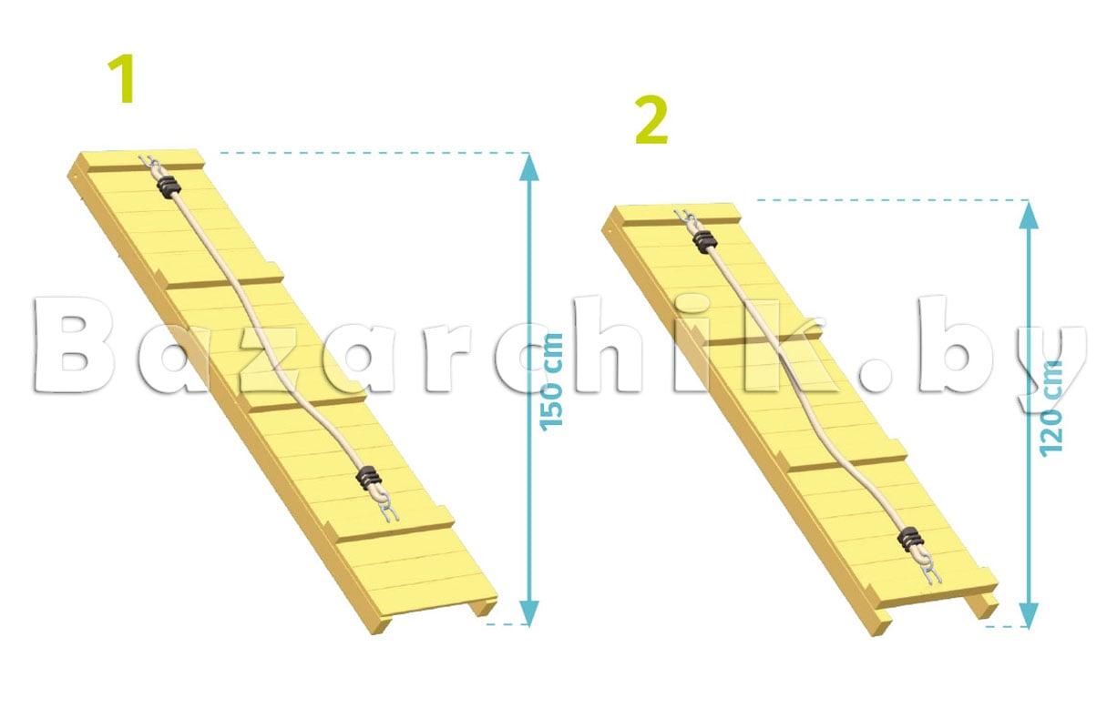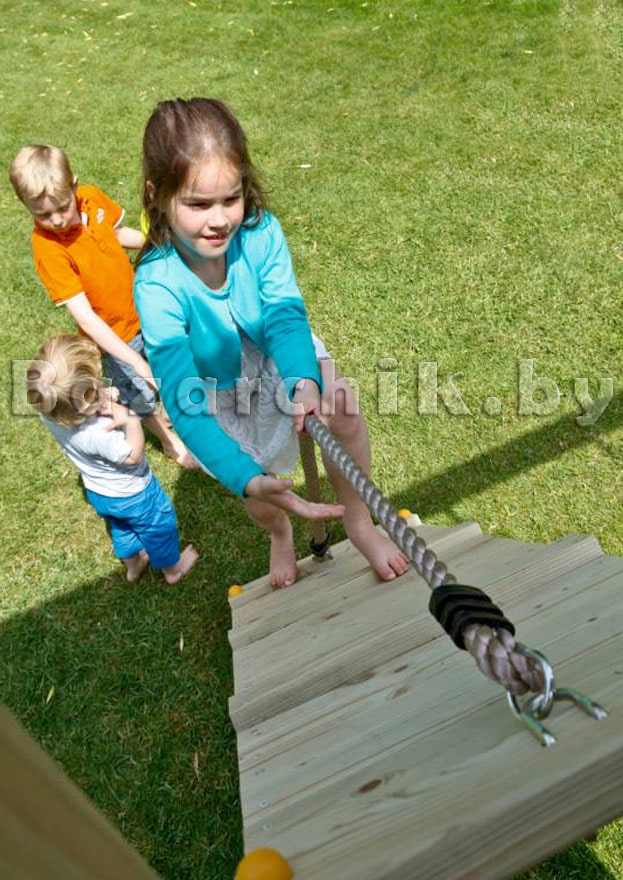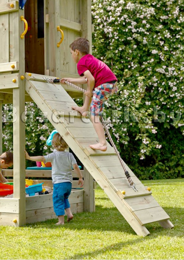 Предлагаем набор-конструктор для установки дополнительного игрового модуля "Склон" (древесина в комплект не входит). Это очень простой в установке модуль, который подойдет для детских площадок фирмы kbt (Бельгия) Palazzo, Pagoda, Kiosk, Penthouse, Beach Hut и Belvedere. В зависимости от высоты башни можно использовать один из вариантов - с высотой платформы 1,2 или 1,5 м. Склон прекрасно развивает у детей чувство равновесия и улучшает моторику. Канат поможет взобраться по склону, а дополнительные перекладины на деревянной платформе облегчат лазанье.