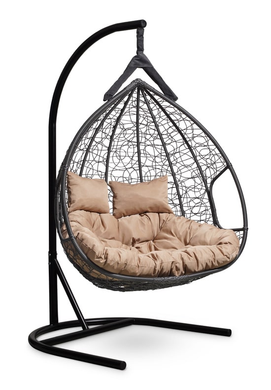 Подвесное двухместное кресло-кокон FISHT черный кокон+бежевая подушка