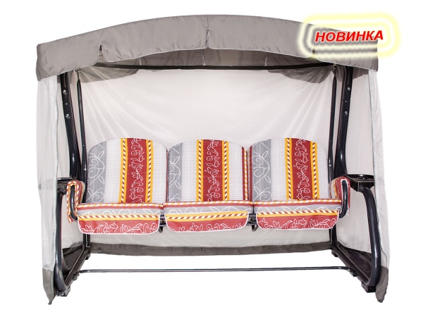 Тент: Тент ткань с водоотталкивающей отделкой 100% п/э плотность 120г/м2 , с противомоскитной сеткой (полотно гардинное основовязаное 100% п/э плотность 39г/м2 - фиксация сетки на тканевом тенте осуществляется с помощью горизонтальных и вертикальных застежек – «молний».