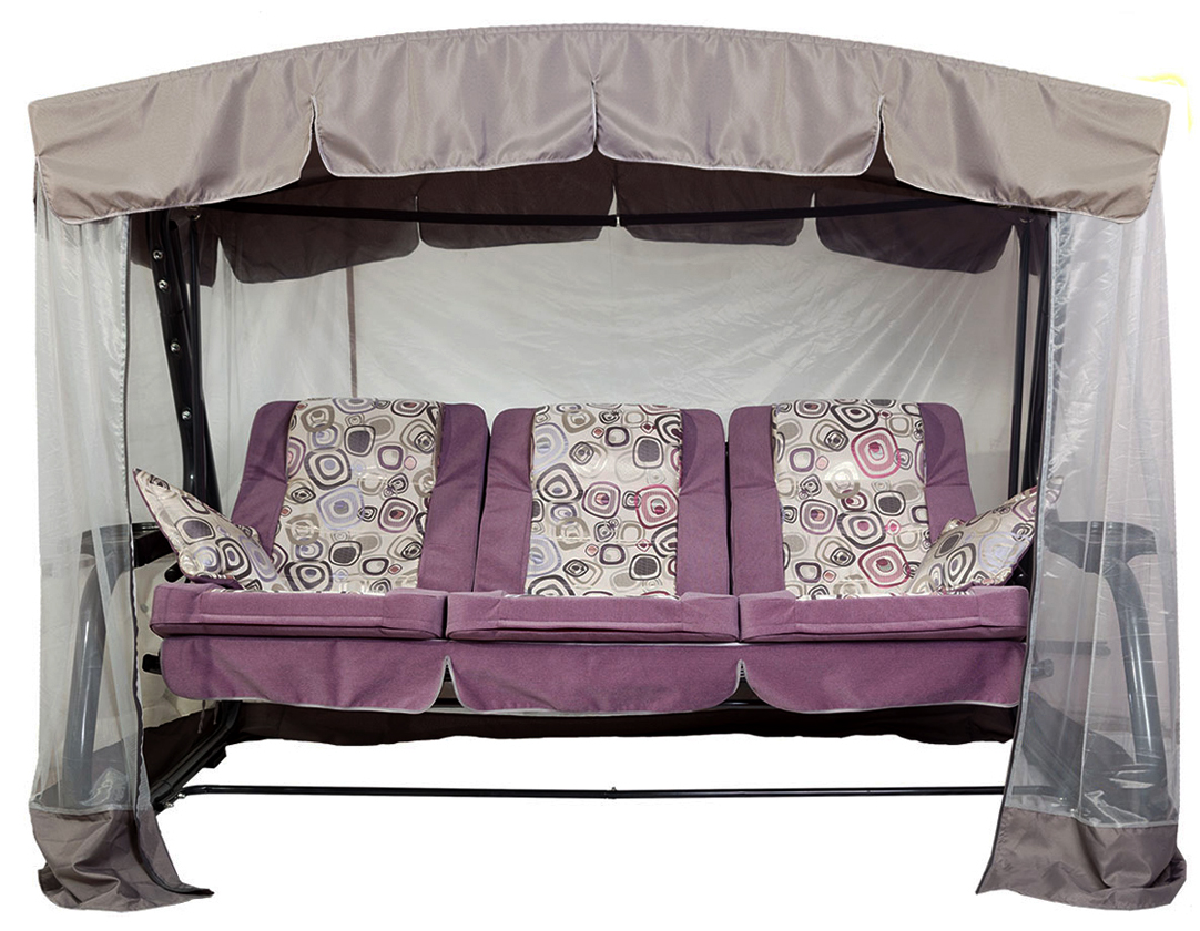 Тент: Тент ткань с водоотталкивающей отделкой 100% п/э плотность 120г/м2, с противомоскитной сеткой (полотно гардинное основовязаное 100% п/э плотность - фиксация сетки на тканевом тенте осуществляется с помощью горизонтальных и вертикальных застежек – «молний».