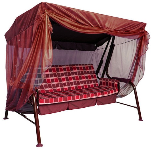 Тент: Тент ткань с водоотталкивающей отделкой 100% п/э плотность 120г/м2 , тент противомоскитный (полотно гардинное основовязаное 100% п/э плотность Тент – 2шт.