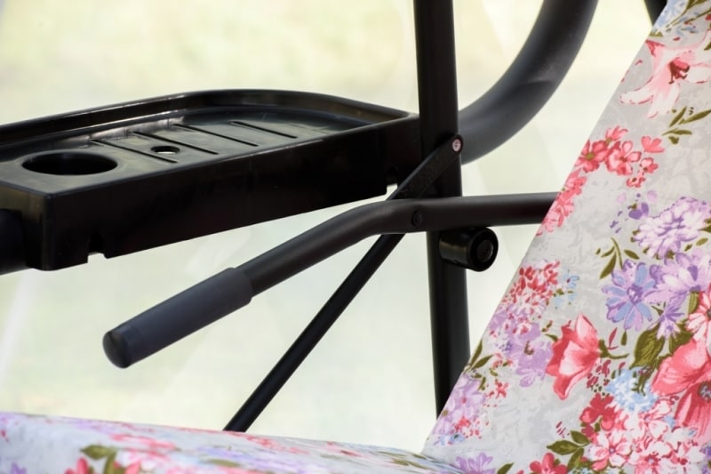 Регулировка спинки: для раскладывания спинки поднимается ручка трансформации и фиксаторы, расположенные на спинке, защелкиваются на опорной дуге.
