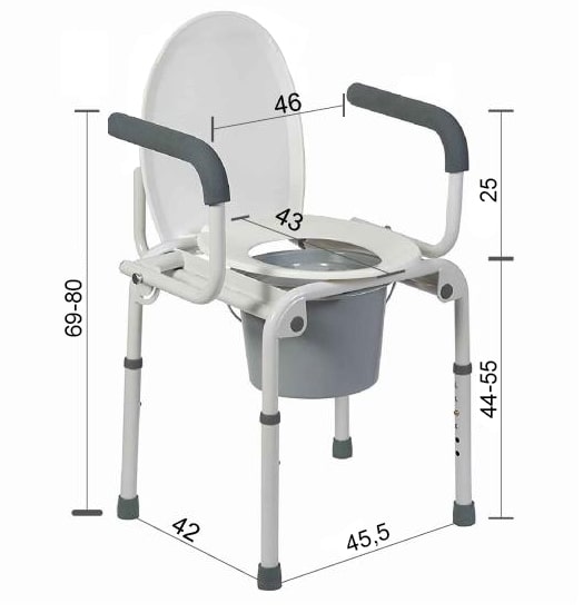 Подлокотники переносного туалета прямые, откидные, несъемные.