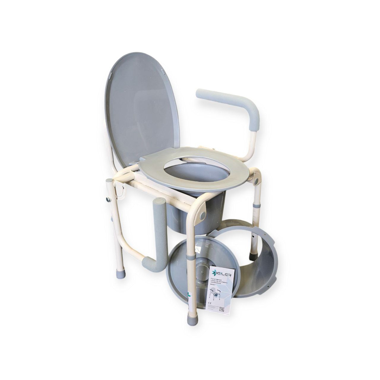 Сиденье и санитарная емкость - съемные, изготовлены из легкомоющегося пластика.