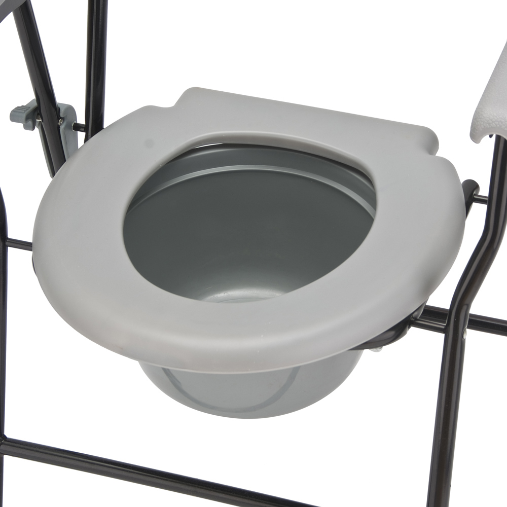 Рама кресла-туалета изготовлена из металла и имеет эмалевое лакокрасочное покрытие.