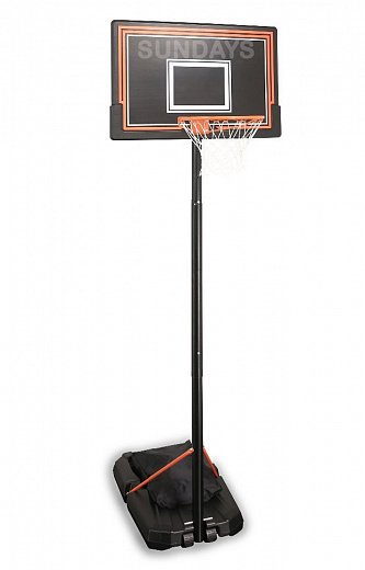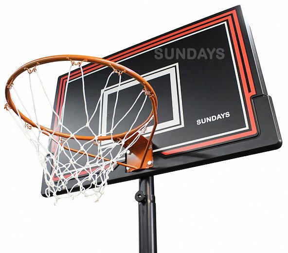 Sundays ZY-090, это стойка, которая подойдет не только детям и подросткам, но и взрослым. Оригинальная регулировка позволяет настроить высоту стойки, в зависимости от роста игроков, что позволяет комфортно играть даже взрослым. Вы можете установить кольцо на высоту от 230 до 305 см. Прочность конструкции обеспечивает мощная железная опора, закрепленная на широком постаменте, который заполняется песком или водой. К удароустойчивому пластиковому щиту крепится стальное кольцо. Платформа стойки оснащена колесами, что способствует легкой транспортировке.