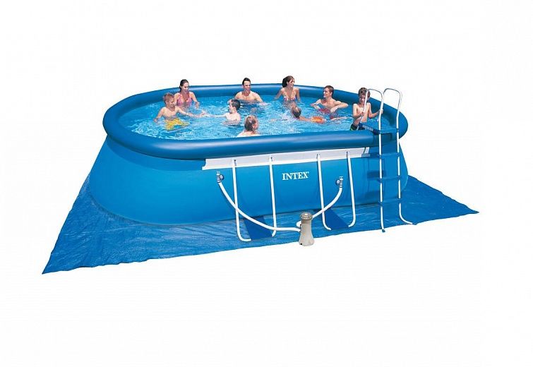 28192/54932 Надувной бассейн Oval Frame 549x305x107 см, Intex + фильтр-насос, картриджный фильтр, лестница, подстилка, покрывало