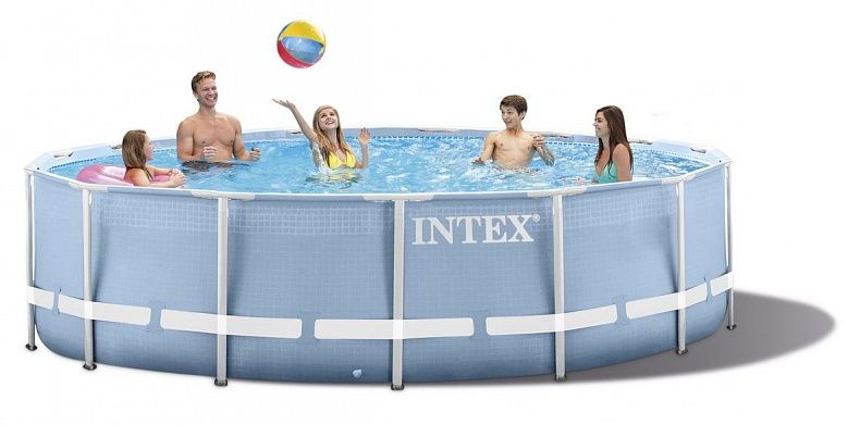 28734 Каркасный бассейн Prism Frame 457x107 см Intex + фильтр-насос, лестница, тент, подстилка