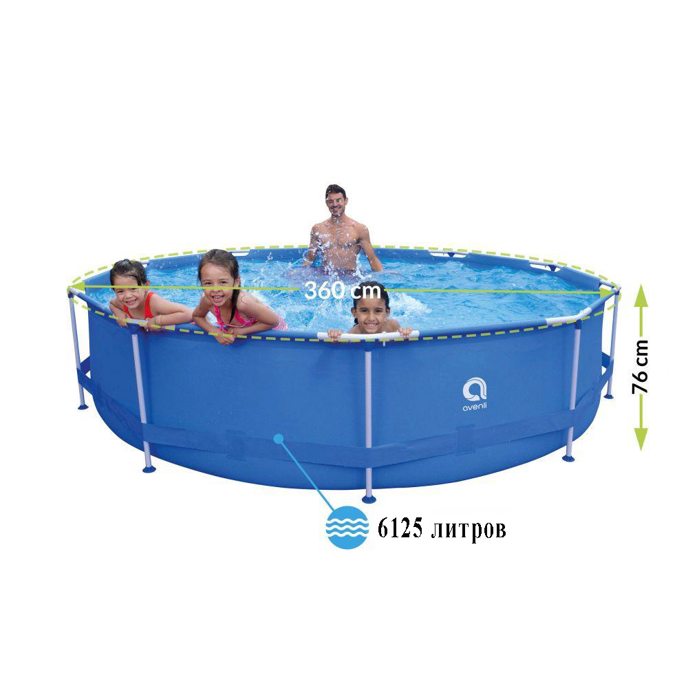 Каркасный бассейн Avenli 360 х 76 см + фильтр-насос для воды