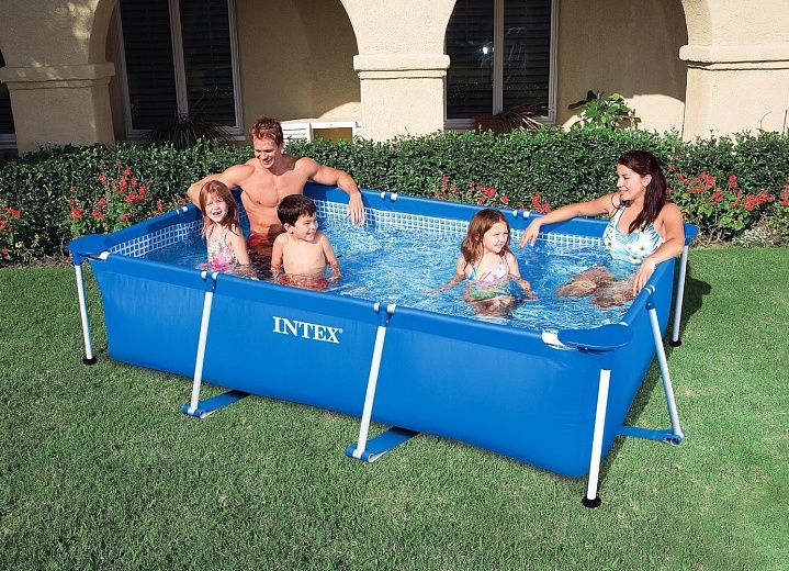 Intex 28272NP/58981 – отличный сборный бассейн для целой семьи! Практичная прямоугольная форма позволит маленьким детям даже научиться плавать в нем. Каркас бассейна состоит из толстых стальных труб, окрашенных антикоррозийным составом. К ним крепится чаша, изготовленная из плотного слоистого материала (ПВХ + полиэстер). Состав материалов позволяет использовать бассейн долгое время под открытым небом. Бассейн устанавливается просто и для этого вам не требуется специальных умений и инструментов.