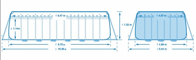 Каркасный бассейн Intex Ultra Frame 26372NP – это новинка, бассейн сезона 2018 года! Огромный сборный каркасный бассейн прямоугольной формы серии Intex Ultra Frame (модель 26372) комплектации DELUXE с песочным фильтр-насосом, лестницей, тентом и подстилкой. В производстве бассейна используется запатентованная технология SUPER-TOUGH, которая обеспечивает надежность и долговечность чаши бассейна. Материал стенок бассейна состоит из трех независимых слоев: два слоя сверхплотного винила и один - полиэстр для придания особой прочности. Для установки бассейна не требуется подготовки земли, насыпке песка и т.п., все, что нужно, это плоская, горизонтальная площадка. Процесс сборки бассейна до наполнения водой занимает 60-90 минут. Удобный сливной клапан бассейна позволяет присоединить садовый шланг, что дает возможность слить воду в любое место.