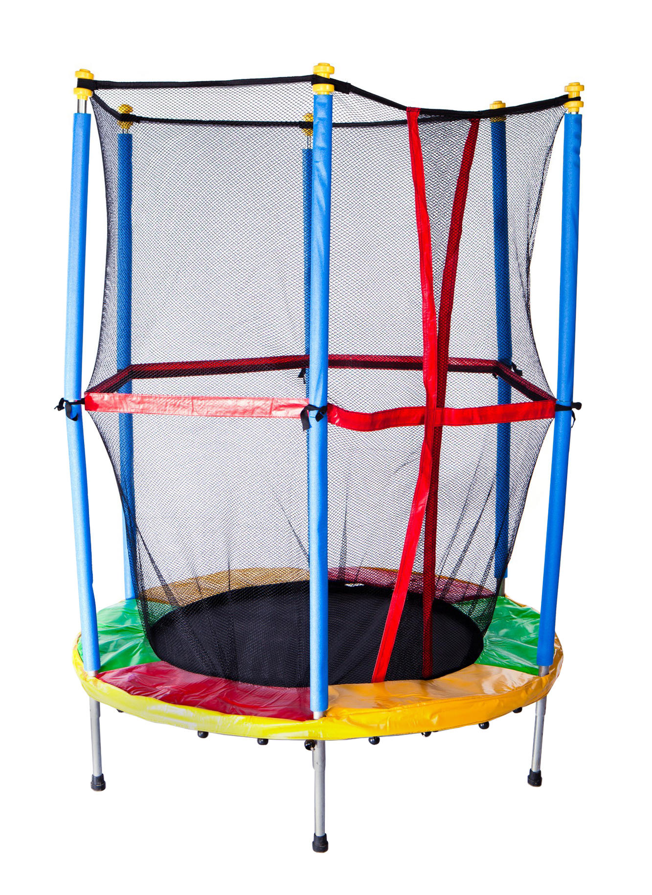 Батут Sundays Acrobat-D150см с ограждением Батут Sundays Acrobat 150см – это надежный и безопасный спортивный тренажер . В комплекте батута имеется защитная сетка, которая не даст выпасть за периметр тренажера во время прыжков. Надежность и долговечность конструкции обеспечиваются прочными гальванизированными пружинами и рамой, устойчивыми к коррозии. Материал прыжкового полотна – полипропилен – также устойчив к перепадам температур и воздействию атмосферных явлений. Такие характеристики батута позволяют использовать его длительное время под открытым небом.