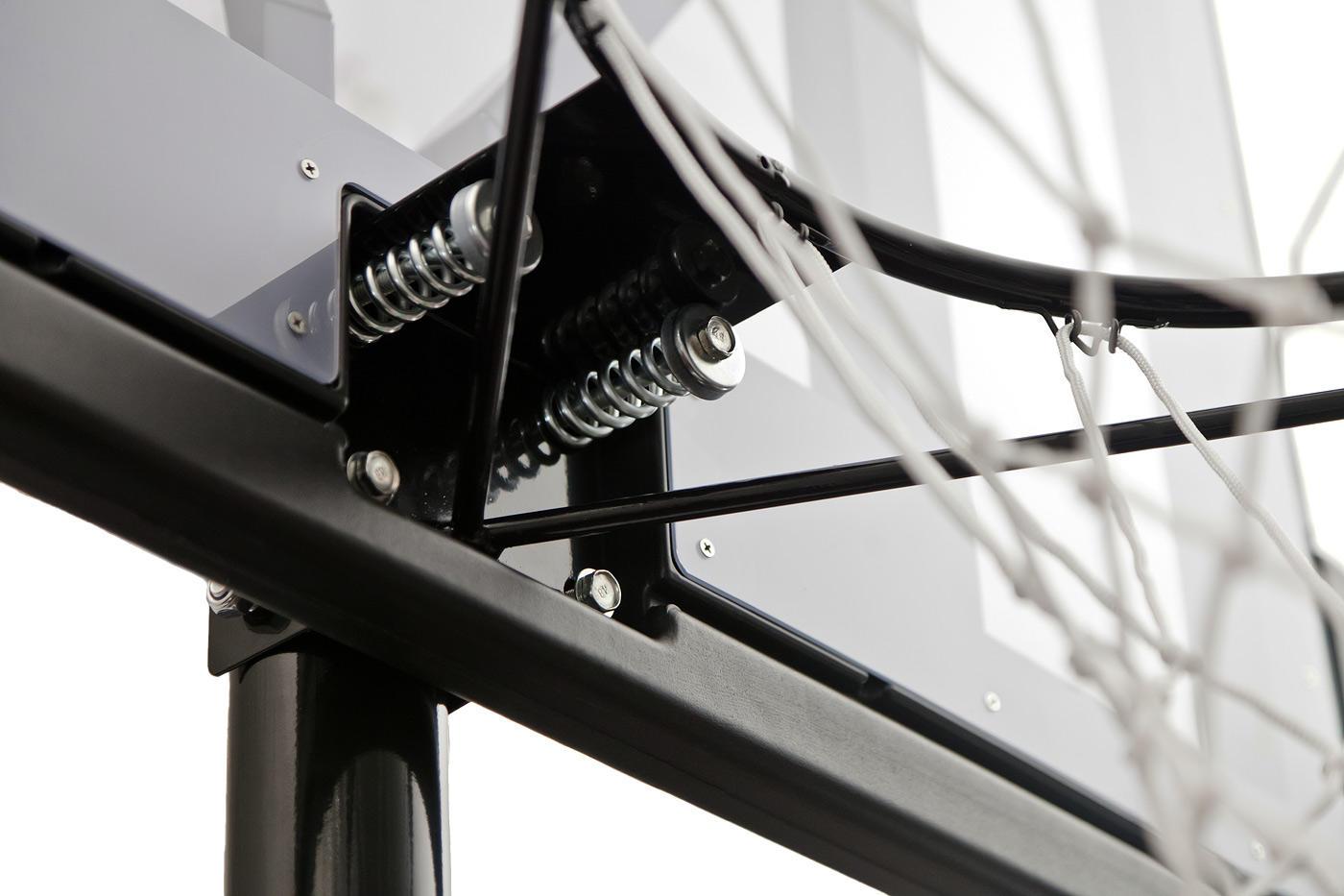 Баскетбольная стойка имеет прочную, устойчивую и надежную конструкцию благодаря металлическому каркасу на широкой платформе, которая наполняется водой или песком для обеспечения устойчивости стойки во время игры, и прямоугольному щиту из ударопрочного пластика со стальным кольцом на амортизаторах, позволяющих игрокам повиснуть на нем, как это делают профессиональные баскетболисты. В зависимости от пожеланий игроков стойка может быть установлена на высоту от 230 до 305 см. Вся конструкция при необходимости легко перемещается благодаря наличию колес в основании платформы