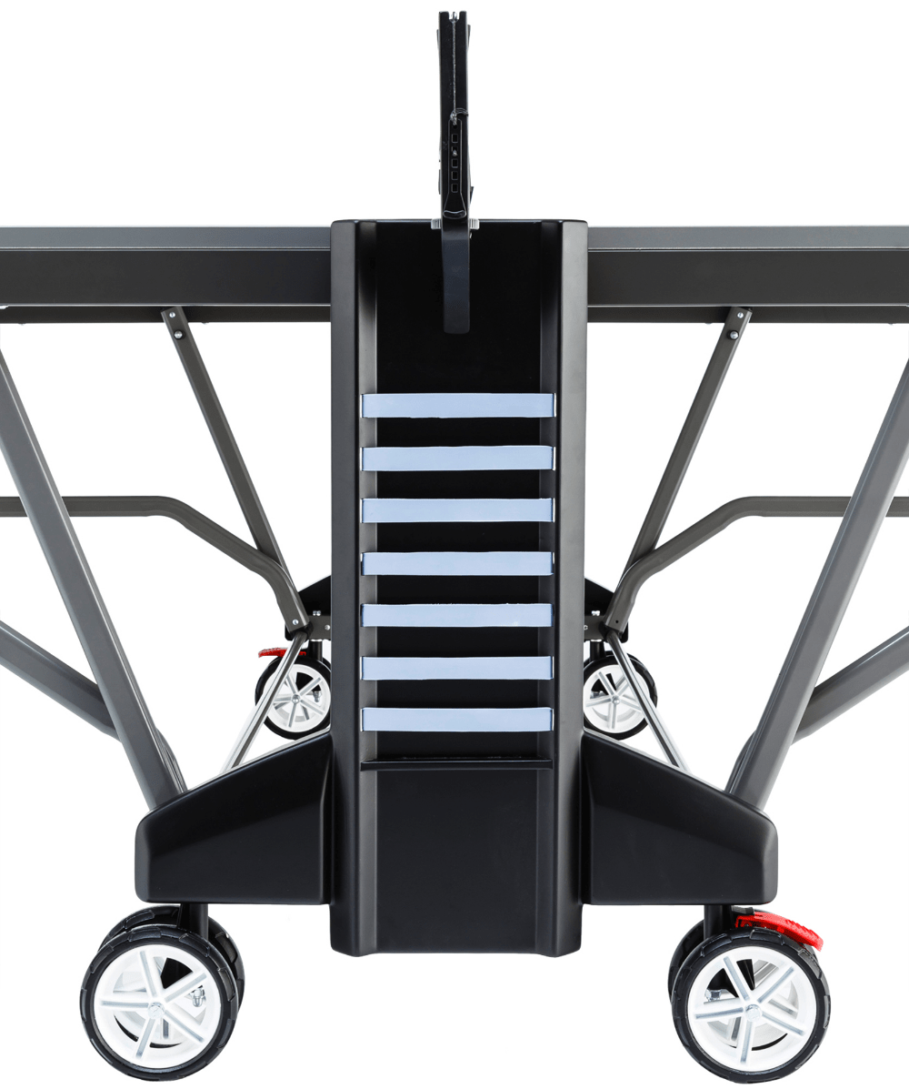 А также: антибликовое покрытие; защитные уголки игровой плиты (съемные); система транспортировки с 4 двойными поворотными роликами и 2 диагонально расположенными тормозами; сетка в комплекте, ракетки и мячи не входят в комплект поставки.
