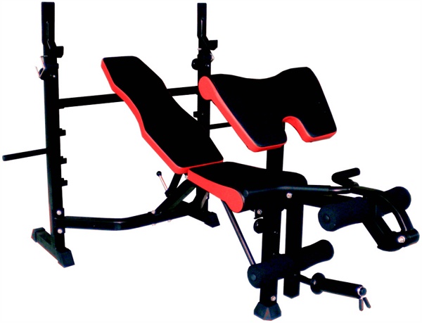 В комплект входит переходник с диаметра 26 мм на диаметр 50 мм для сгибания ног. Регулировка уровня наклона скамьи в 6 положениях (-5°, 15°, 30°, 45°, 60°). Высота скамьи в горизонтальном положении - 52 см от уровня пола. Стойки регулируемые по высоте. Расположения штанги на стойках (4 уровня высоты): 104, 111, 118, 125 см от уровня пола. Быстрая регулировка по высоте благодаря системе LOOSEN&PULL (ослабь и потяни) позволяет за несколько секунд и без каких бы то ни было усилий изменить высоту штанги. Комфортные валики увеличенного диаметра 9,5 см для сгибания ног. На стойках расположены замки безопасности для фиксации штанги. Под скамьей имеется специальный держатель для хранения гантели. Доступные упражнения: жим лежа, сгибание и разгибание ног в коленном суставе , упражнения с гантелями, на бицепсы.