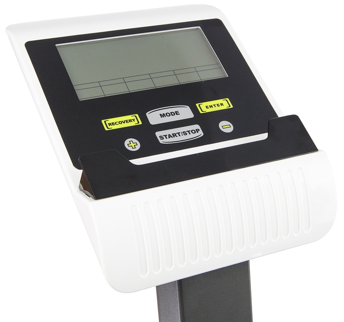 - Отображение информации на дисплее: общее расстояние, время тренировки, расстояние, скорость, калории, пульс, скан (все показатели)