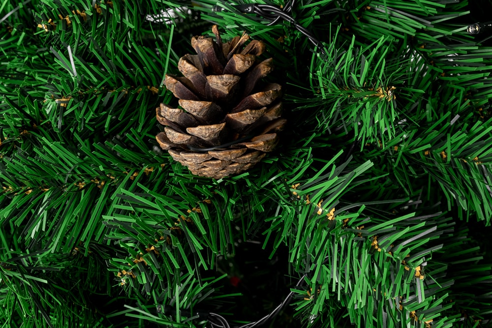 Украшение: Есть, шишки, гирлянда