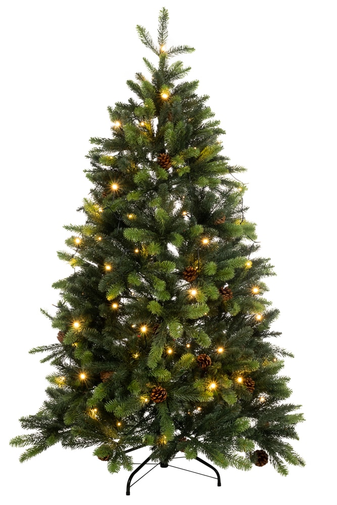 Ель украшена натуральными шишками. В комплекте с елью поставляется новогодняя гирлянда и подставка.